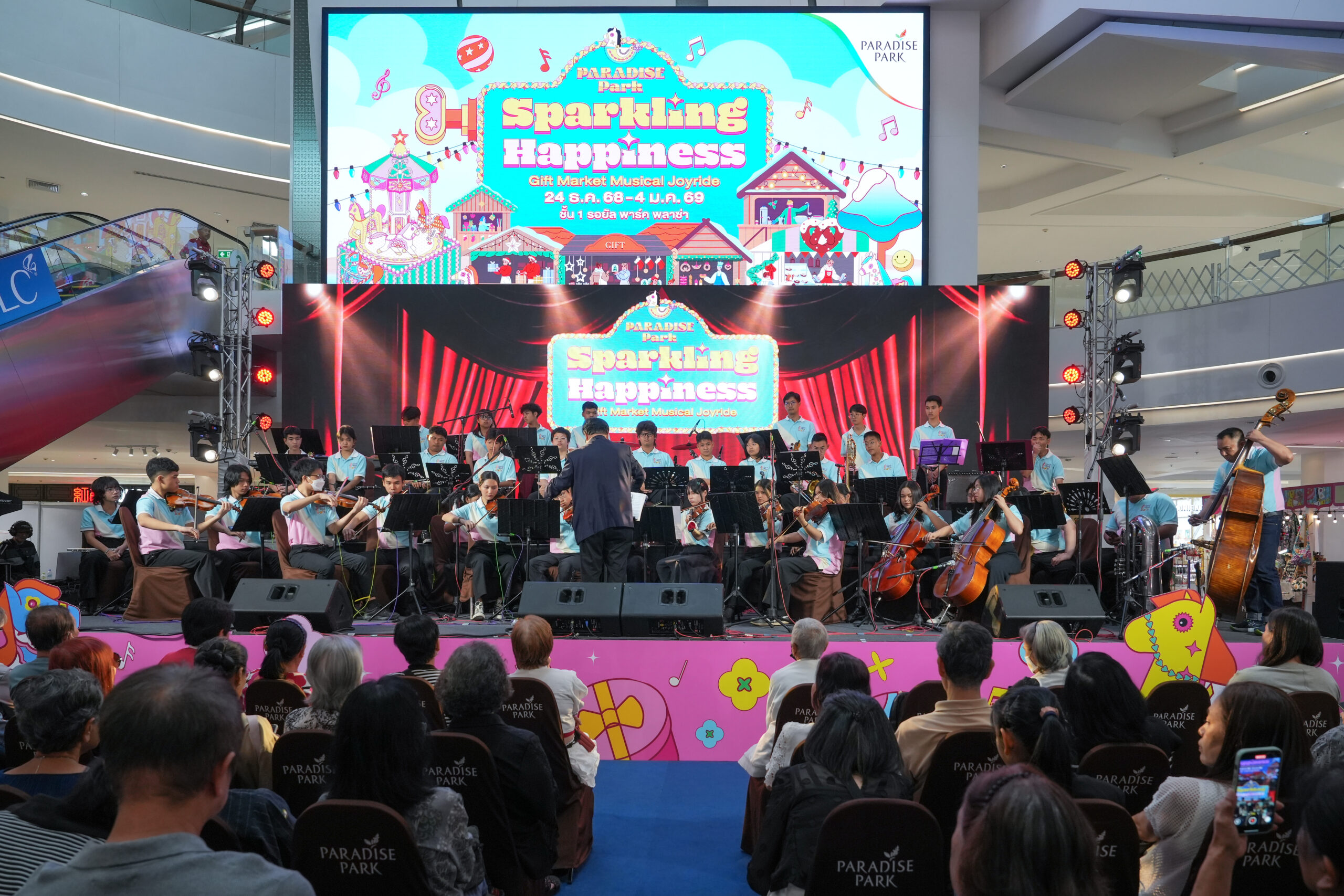 📸 ภาพบรรยากาศภายในงาน Paradise Park Sparkling Happiness “Gift Market Musical Joyride” 🎠 กับการบรรเลงดนตรีและขับร้องเพลง ในรูปแบบวง Light Orchestra จากน้อง ๆ วงสานฝัน ปีที่ 3 โครงการ “สานฝันดนตรีเพื่อเยาวชน โดย สำนักงานพระคลังข้างที่” ประจำปี 2568 🎷🎺🎻🥁🎹🎸🎤 🎶 ถ่ายทอดบทเพลงอันไพเราะได้อย่างงดงามและอลังการ ✨