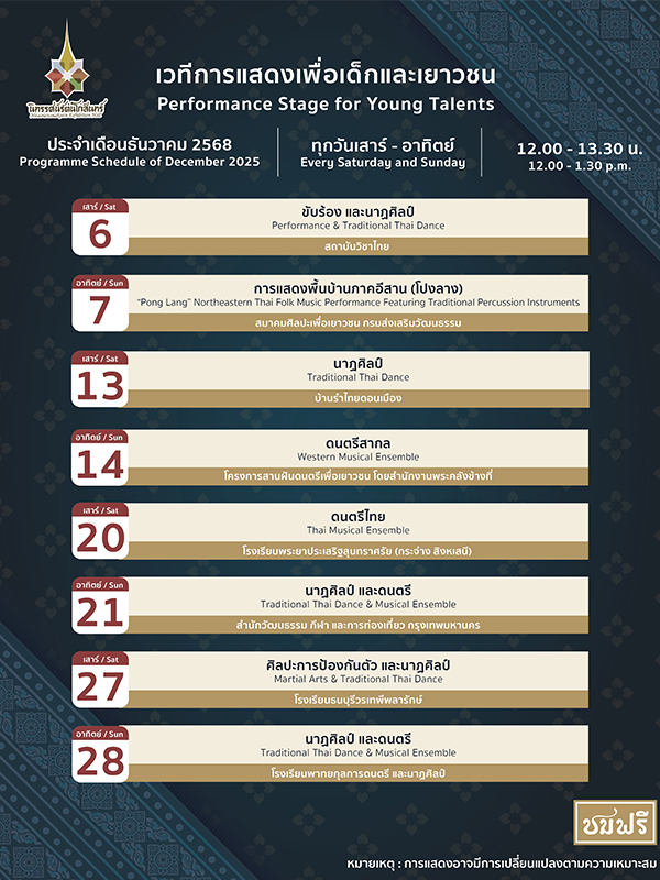 หมายเหตุ : การแสดงอาจมีการเปลี่ยนแปลงตามความเหมาะสม