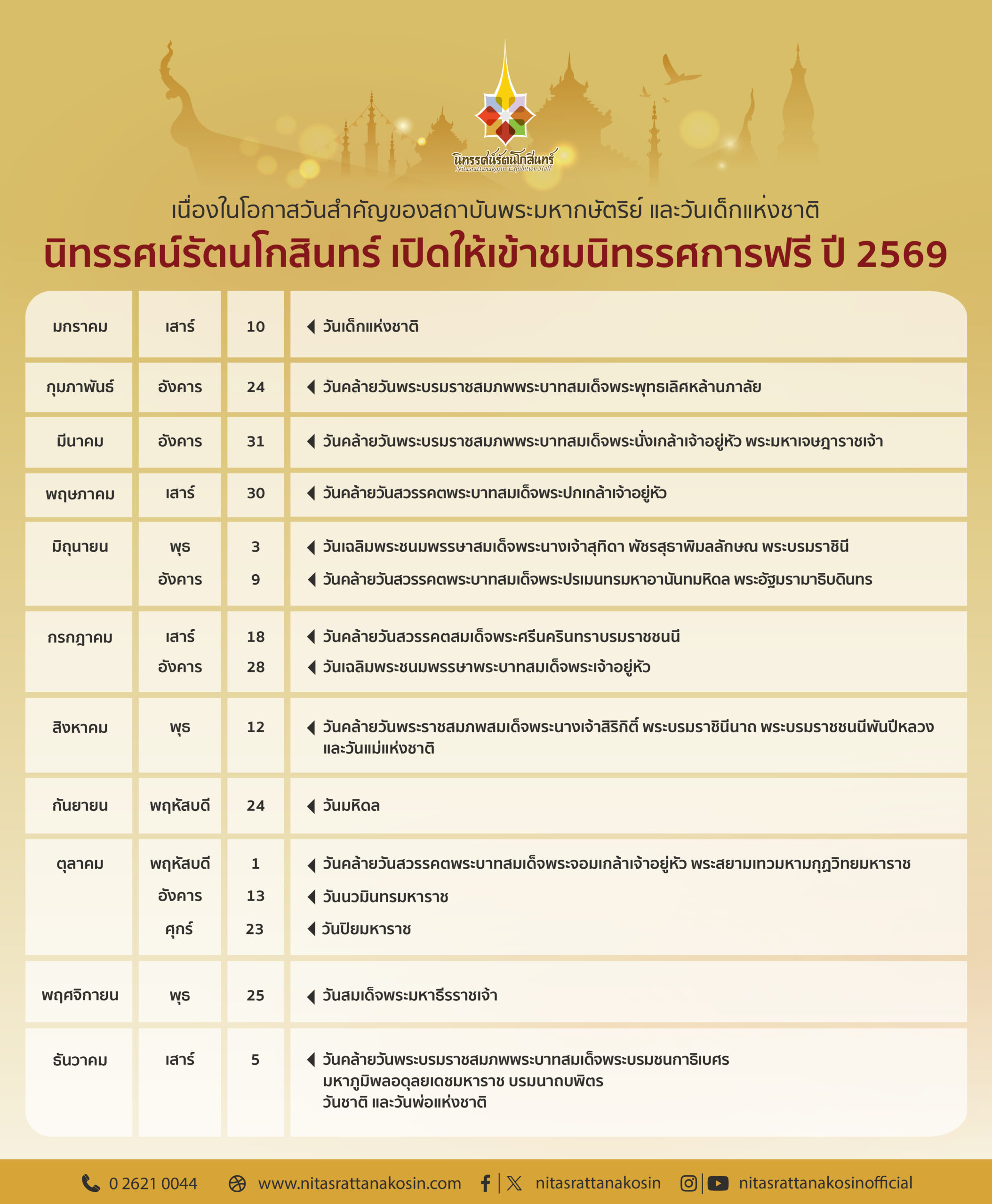เด็ก นักเรียน ผู้สูงอายุ ภิกษุ และผู้พิการ เข้าชมฟรี