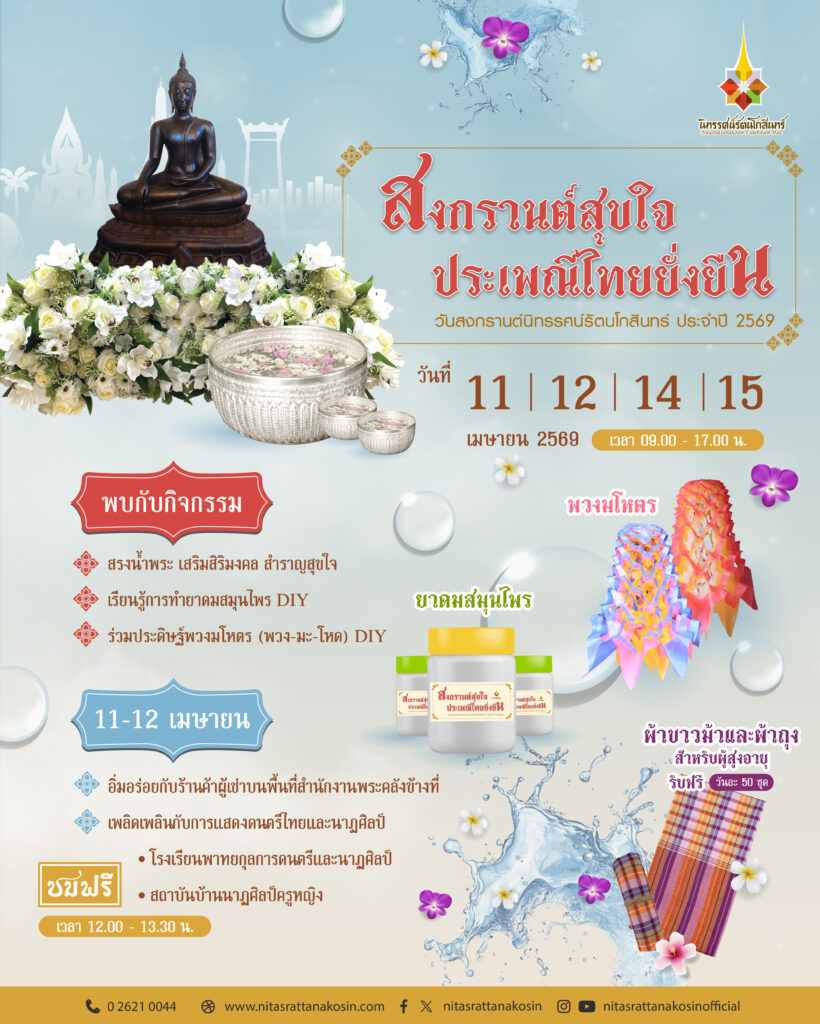 🏛️ นิทรรศน์รัตนโกสินทร์ ขอเชิญร่วมงาน “สงกรานต์สุขใจ ประเพณีไทยยั่งยืน” ✨ วันสงกรานต์ประจำปี 2569 💦