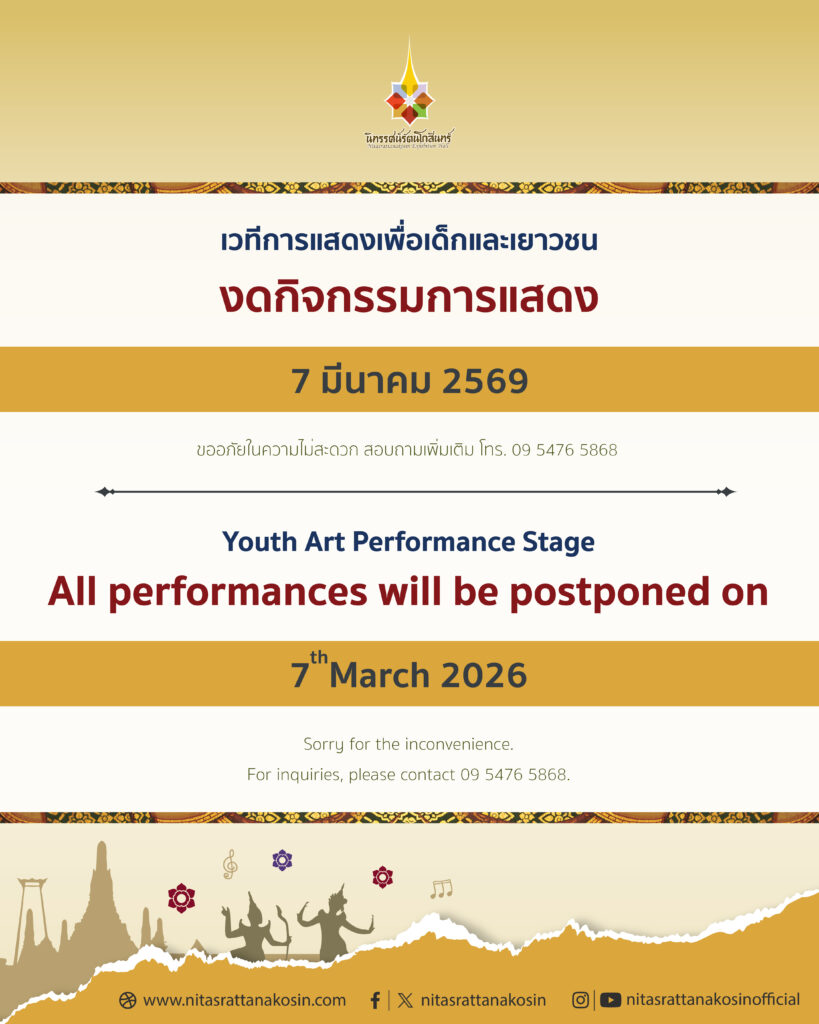 วันที่ 7 มีนาคม 2569 งดกิจกรรมการแสดง