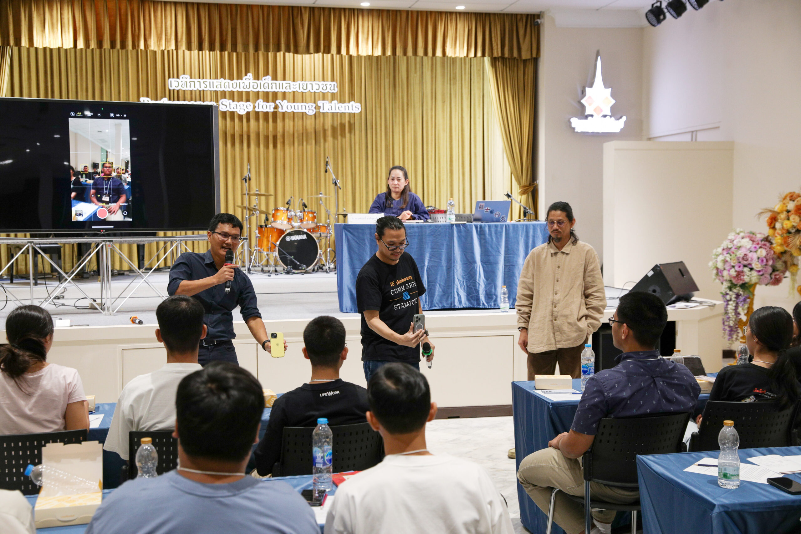 🗣 ผศ.ดร.กิตติธัช ศรีฟ้า อ.ณัฐวุฒิ สิงห์หนองสวง ผศ.ดร.ดลพร ศรีฟ้า และ อ.เจตน์จันทร์ เกิดสุข บรรยายหัวข้อ “การเขียนบทพูด – บทภาพ เทคนิคการถ่ายทำ และการผลิตสื่อ”