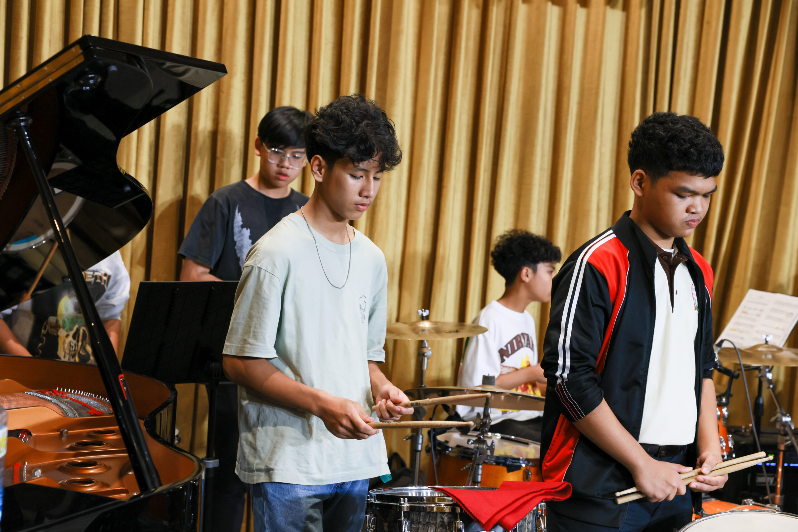 ซึ่งน้อง ๆ ทุกคนได้เรียนรู้พื้นฐานความเข้าใจเบื้องต้นเกี่ยวกับ Stage and Sound System รวมถึงประเภทและการทำงานของไมโครโฟน 🎤 การควบคุมเสียงจากนักร้อง – นักดนตรี 👨🎤👩🎤ตลอดจนการควบคุมเสียงจากอุปกรณ์ของเวที นอกจากนี้ ต้องเตรียมความพร้อมสำหรับ Sound Check 🔊 อีกทั้งการสื่อสารกับผู้ควบคุมระบบ เพื่อให้สามารถปรับเสียงในการแสดงได้อย่างมีประสิทธิภาพ 👍